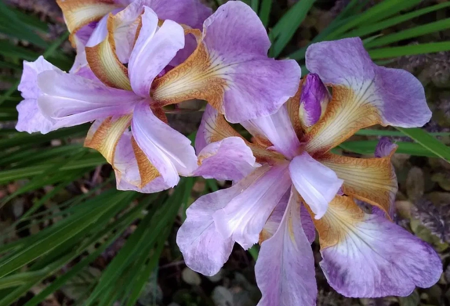 - листья зеленые. Ирис Kita-No-Seiza (Кита-Но-Сейза) дает цветы с полумахровыми лепестками в пастельных тонах. Лепестки получаются серебристо-сиреневого цвета с белыми тонкими прожилками и зелеными шартрезными пятнами у основания. Данный сорт семян хорошо себя чувствует во влажных садах или на мелководье пруда.