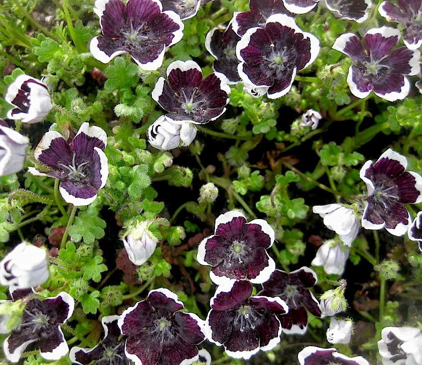 Семена немофилы обыкновенной (Nemophila menziesii) Пенни блек, высаженные в апреле, дадут вам цветущий с июня по сентябрь удивительный по красоте экзотичный коврик.  Все дело в необычной окраске цветков этого сорта — лепестки имеют почти черный цвет и белую кайму по краям. Цветы одиночные, мелкие, около 3 сантиметров в диаметре. Листья удлиненные, перистые. Стебли стелющиеся, до 15 сантиметров высотой. Чтобы получить плотную полянку цветов и зелени, семена следует высаживать на расстоянии 10-20 сантиметров друг от друга. Немофила предпочитает полутень и влажный грунт. Выигрышно смотрится в рабатках, бордюрах, горшечных композициях.