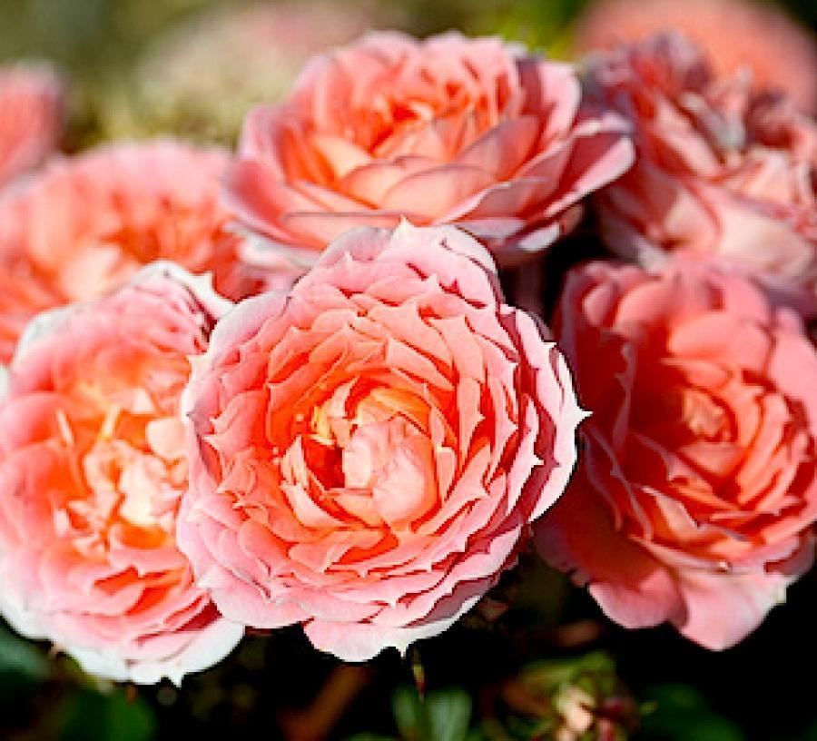 Рассада розы патио Флауер Пауер (Flower Power) привлекательный сорт миниатюрных растений с розово-персиковыми цветами. Соцветия собраны в кисти из 3-5 штук. Компактные размеры позволяют высаживать розу в горшках и менять оформление сада. Размер цветков 4-5 см. Лепестки в центре лососево-оранжевые, ближе к краям соцветия меняют оттенок на розовый. Высота взрослого куста 30-40 см. После цветения завязываются коробочки с семенами. Особенности розы патио Флауер Пауер: